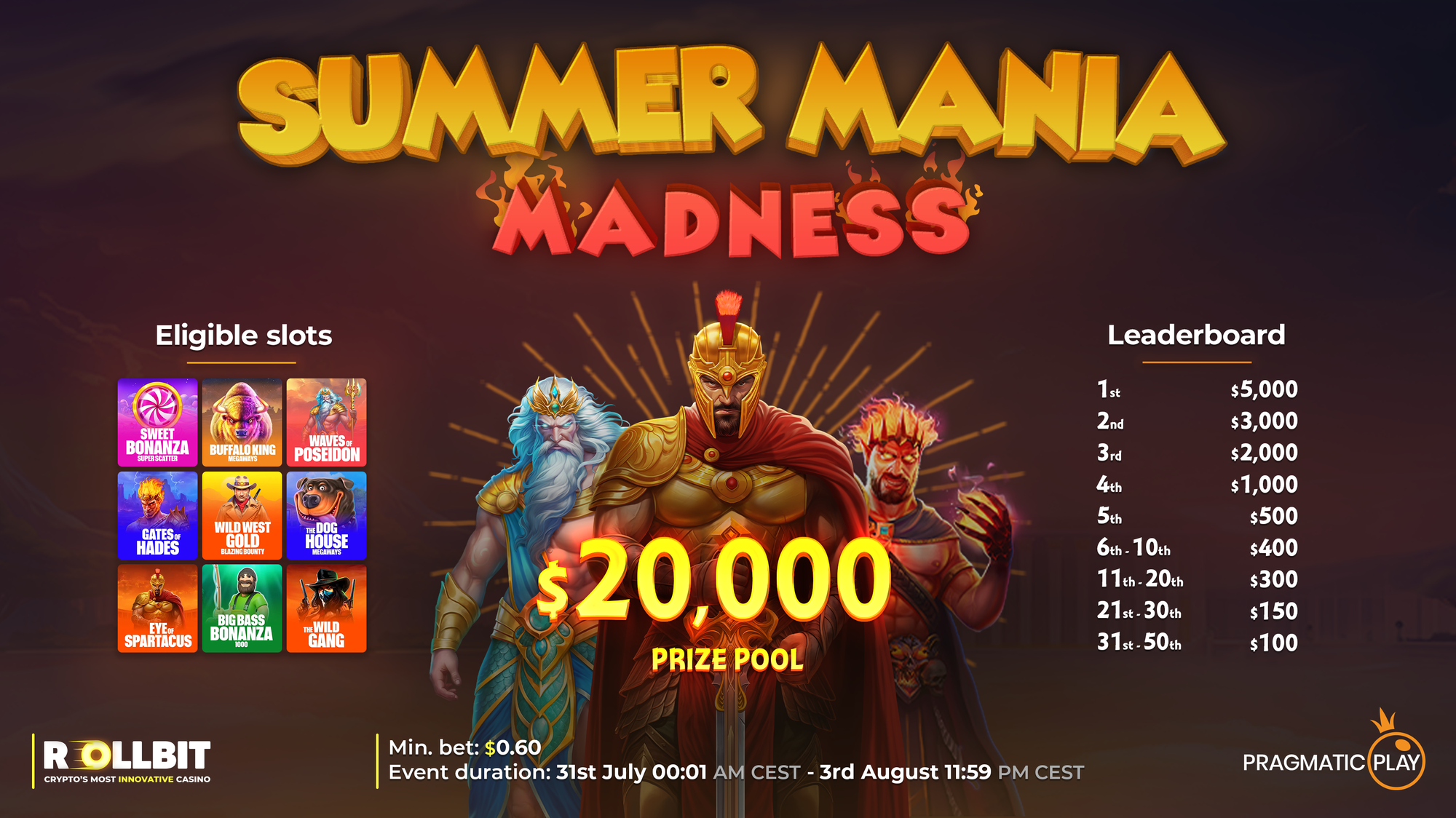 Pragmatic Play brings an exclusive $20,000 Highest Multiplier competition to Rollbit on eligible slots. Compete for the highest bet multiplier on an individual bet and climb the leaderboard for a chance to win up to $5,000.