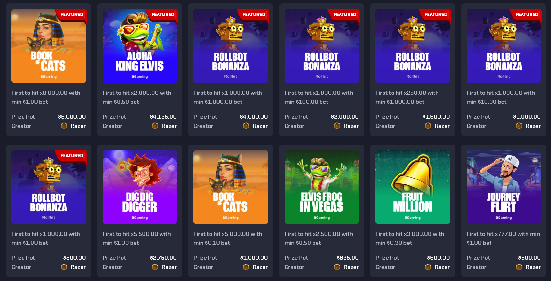 Challenges are a unique way to earn prizes by playing games on Rollbit.