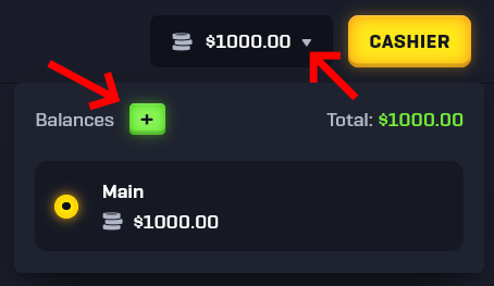 To create a referral balance click your balance at the top of the site, and in the dropdown that appears click the green plus to create a referral balance.