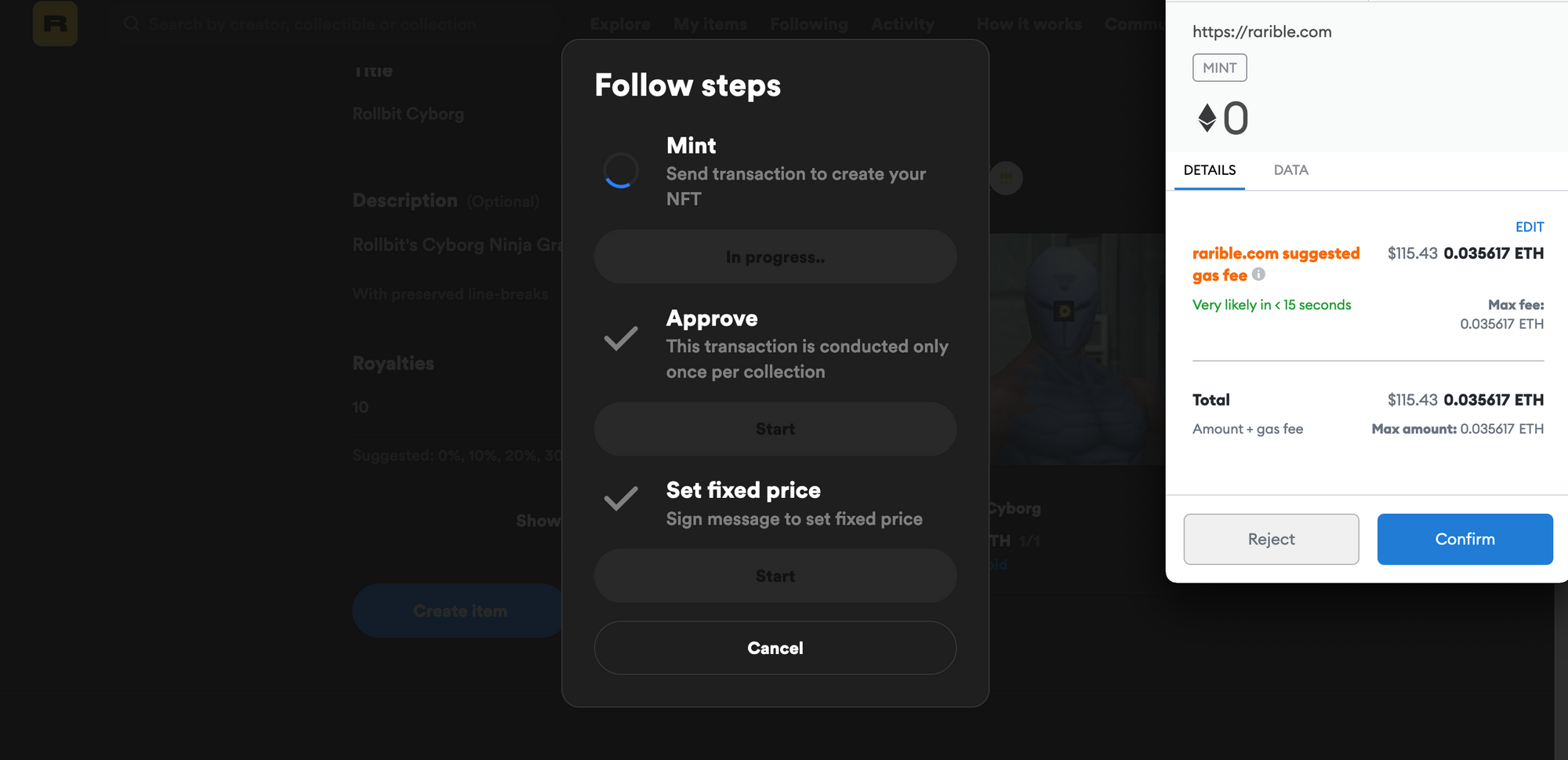 Minting NFTs on Rarible