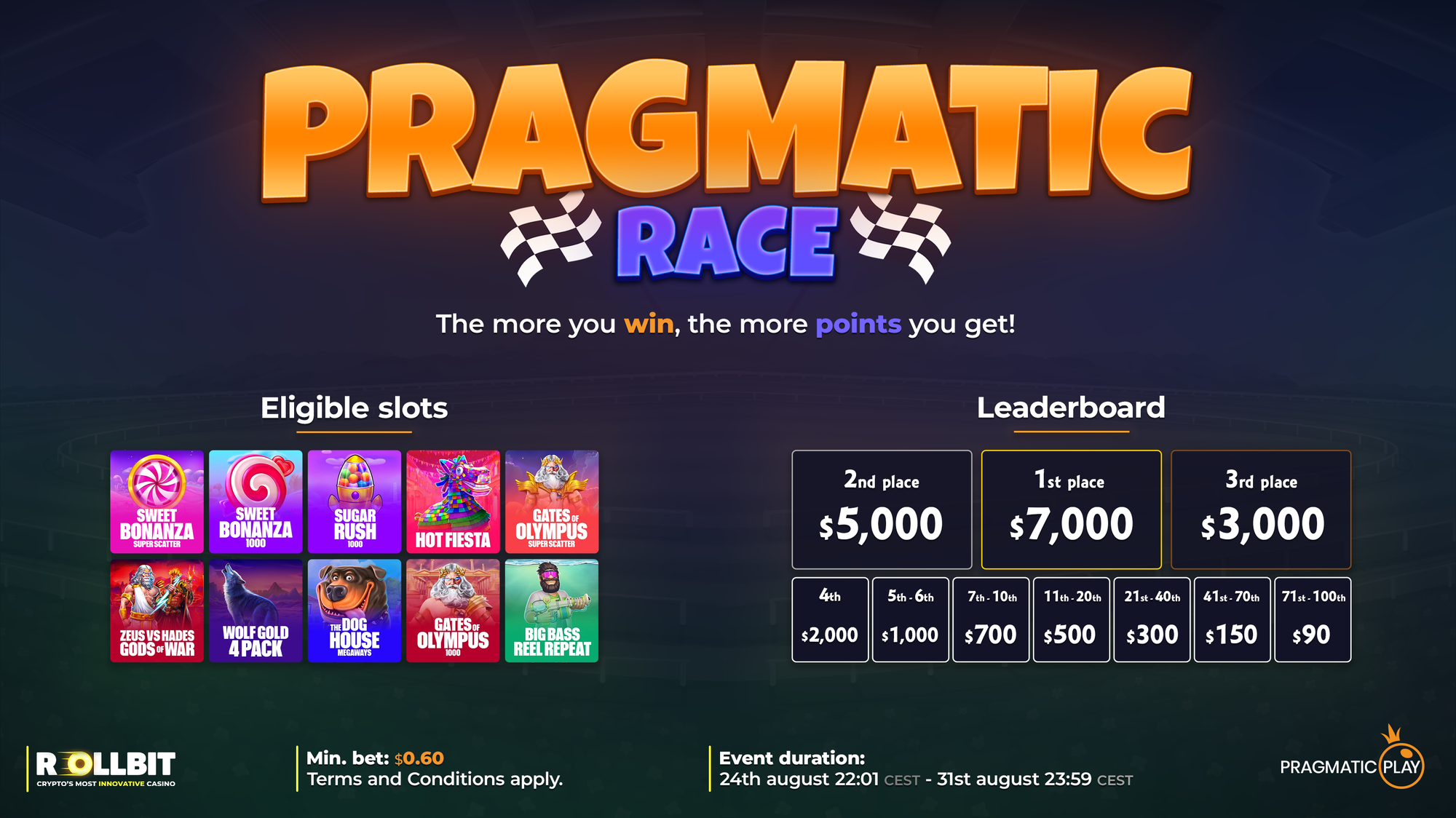 Pragmatic Play brings an exclusive $40,000 tournament to Rollbit. This week-long promotion rewards users who win more on select slots, with higher prizes!