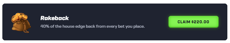 The largest component of Rollbit's revamped rewards is the huge 40% instant rakeback every player is entitled to.