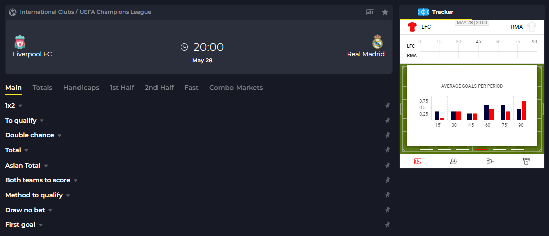 The Champions League Final will be played out on May 28th at 8 PM CET. You can place your bets on this event on Rollbit's Sportsbook. We have a wide range of markets available for this event with competitive odds!