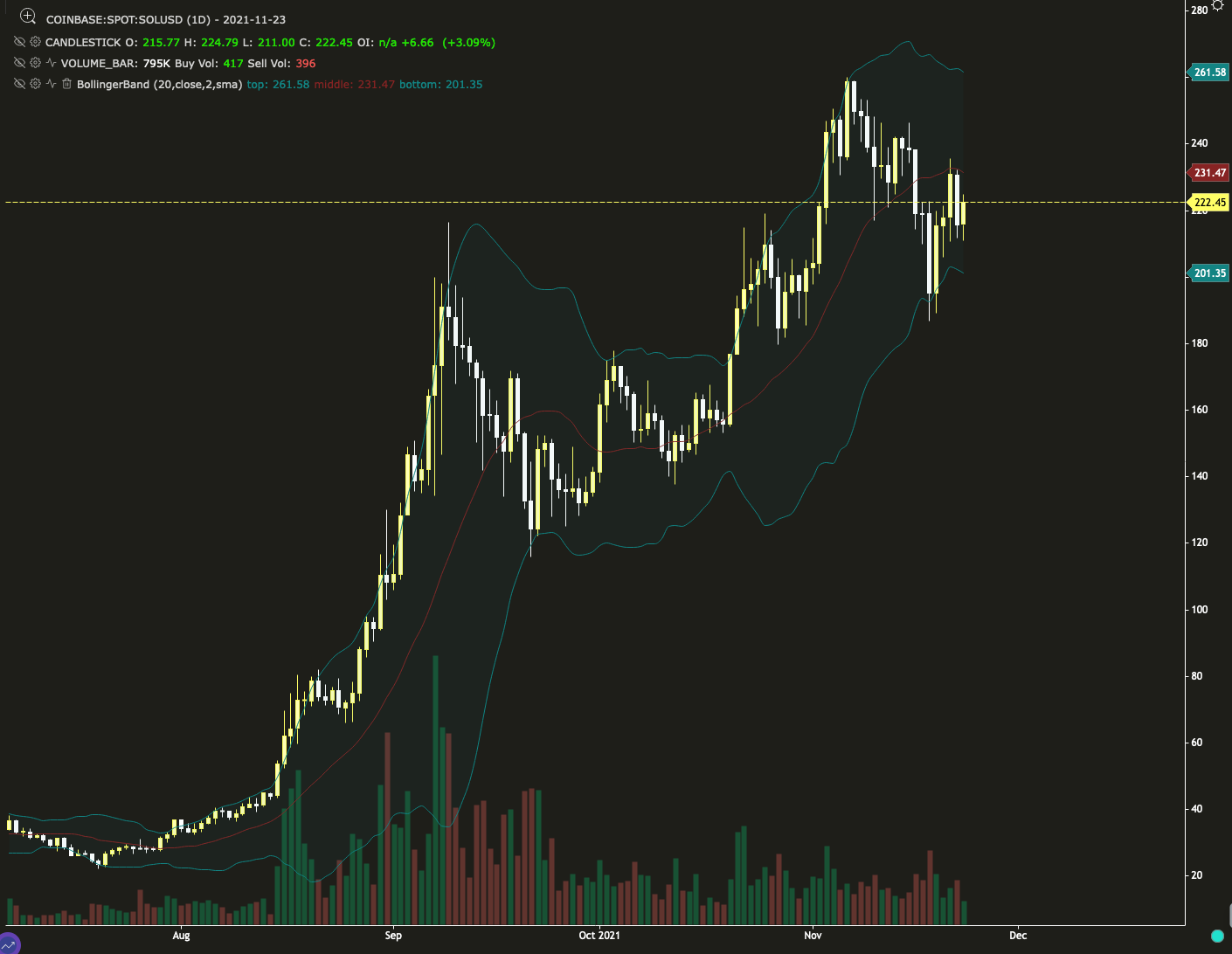 Solana dropped below the previous all-time high of $216 last week and fell to a low near $186. However, since November 19th, the downward reversed and Solana is now trading above $220.
